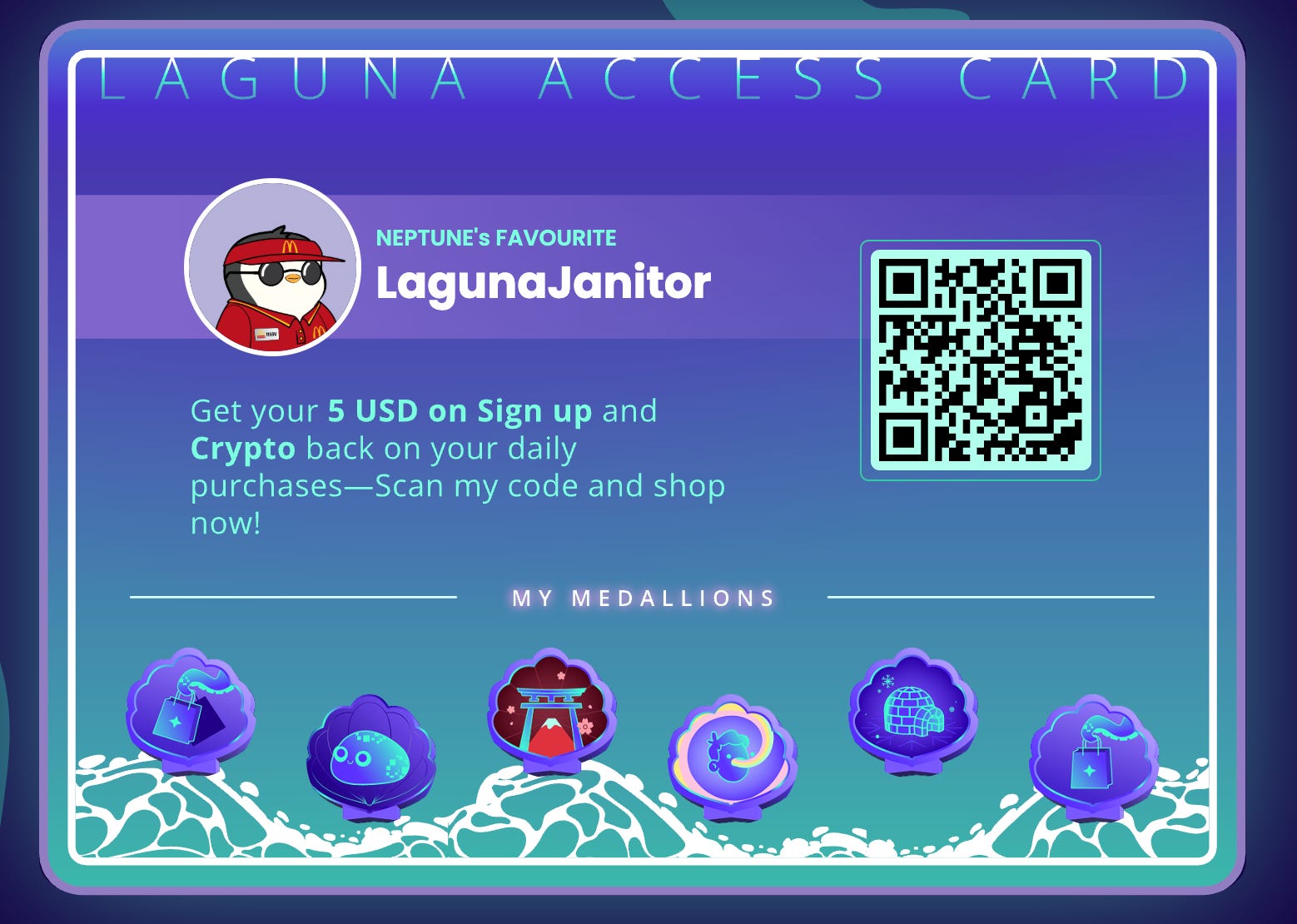 Laguna is a platform that blends crypto cashback, gamified discovery, and a community-driven experience.