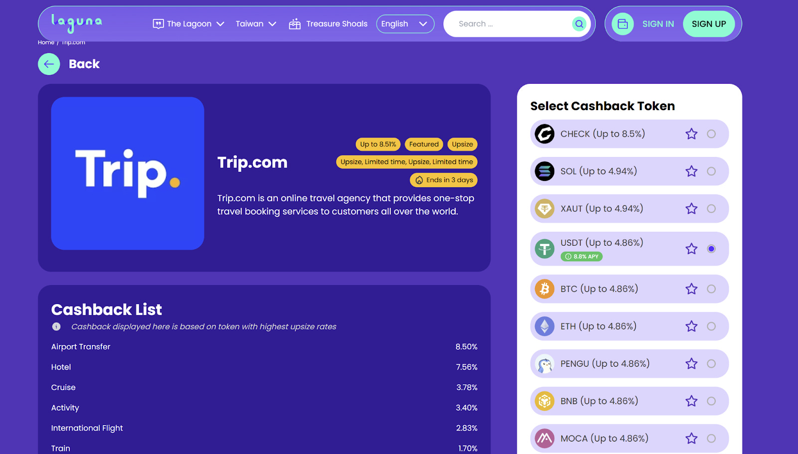 Choose USDT as your cashback token.