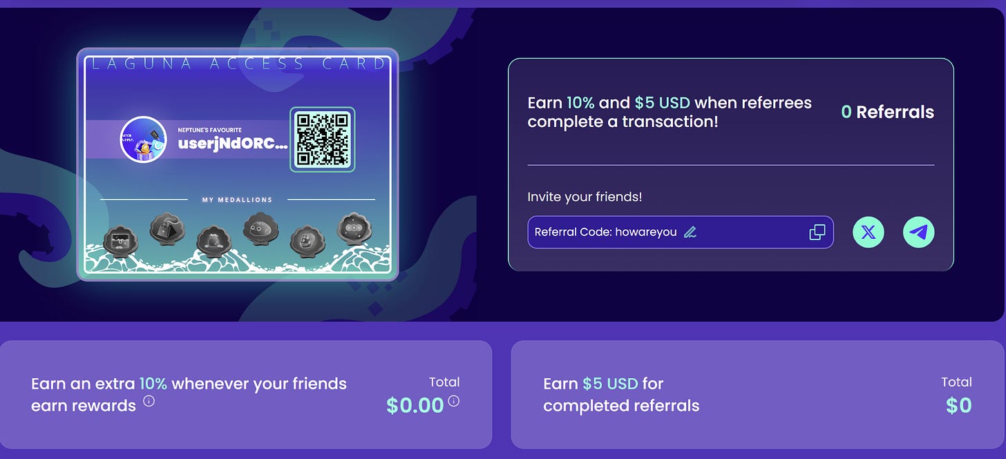 When you share your Laguna link and your friend completes their first purchase, two things happen.